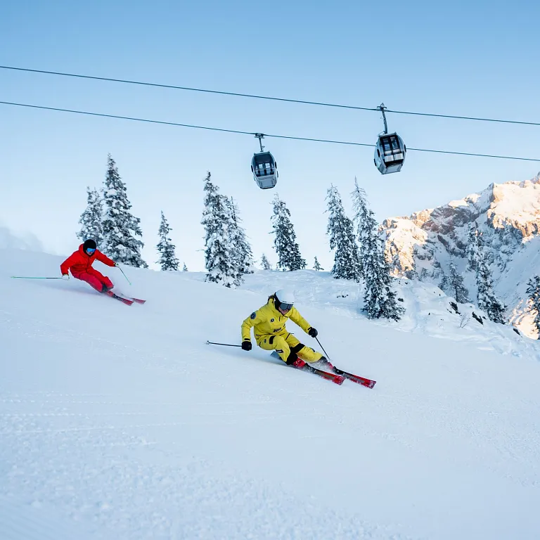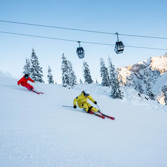 The Hochkönig ski area in Salzburg, including the smaller ski resorts of Hinterreit and the natural snow area Hochkeil, delights winter sports enthusiasts with stunning Alpine panoramas, 120 kilometers of slopes, and a wide variety of runs for all skill levels. Whether in Maria Alm, Dienten, or Mühlbach, skiers and snowboarders will find perfect conditions for their ski holiday in Austria. Wide, well-groomed slopes, modern lifts, and cozy mountain huts with traditional Austrian cuisine make skiing at Hochkönig a true pleasure. Towering majestically over the region, the impressive Hochkönig mountain gives the ski area a unique atmosphere – skiing at a true Alpine hotspot! A must-do is the Königstour Hochkönig: in a single day, conquer 6 peaks, 7,500 vertical meters, and 35 continuous kilometers of slopes. Along the way, stop at romantic mountain huts and enjoy spectacular views of the Hochkönig and the Steinerne Meer – an unforgettable ski adventure. For anyone seeking an unforgettable ski holiday at Hochkönig, the region delivers snow reliability, diverse terrain, and authentic Alpine charm – everything you need for the ultimate winter getaway.